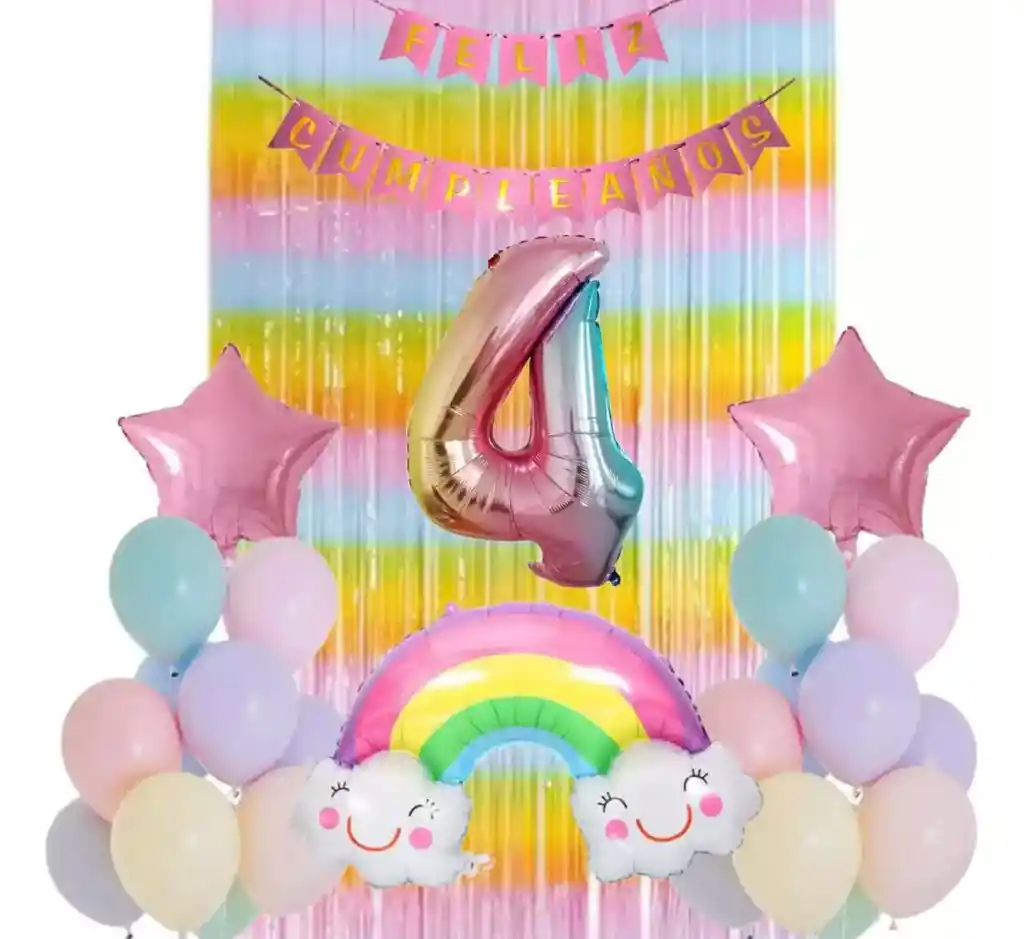 *********************GLOBOS Y PELUCHES MASMELO********************* Somos Mercado Líder Platinum Por tu compra te llevas: 1 Globo arcoíris 80x45cm 1 Globo festón oro rosa 2 metros de largo 1 Globo número 82 cm de altura según tu elección 2 Globo estrella rosada 45x45cm 6 Globo azul pastel 30cm 6 Globo amarillo pastel 30cm 6 Globo rosado 30cm 6 Globo morado pastel 30cm 6 Globo verde pastel 30cm 1 Cortina arcoíris 2x1 metros