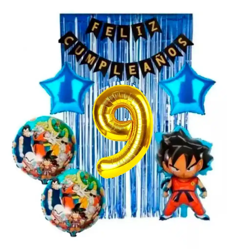 Kit Decoración Globos Dragon Ball Azul Cortina Número # 9