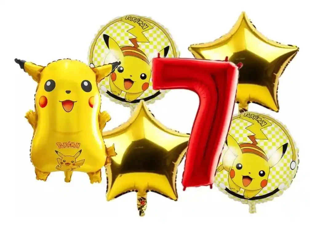 *********************GLOBOS Y PELUCHES MASMELO********************* Por tu compra te llevas. 1 Globo Pikachu 54x45cm 2 Globo circular temática Pikachu 45x45cm 2 Globo estrella dorada 45x45cm 1 Globo número 82cm rojo *Los globos se entregan desinflados, tu compra no incluye el montaje ni la decoración, el servicio de armado no lo tenemos disponible. sin embargo te damos todas las instrucciones para hacer de modo profesional. Si deseas adicionar otros articulos a tu compra puedes escribirnos, recuerda que Somos Globos y Peluches Masmelo Si necesitas variación en los colores, colocar un número, más globos o realizar otros cambios en el diseño original escribenos para ver si podemos hacerlo. Tenemos todo lo necesario para tus decoraciones, somos lo último en tendencias mundiales decorativas. Tenemos disponible: Vasos, platos, manteles, guirnaldas, cubiertos, globos de todo tipo, números, letreros, vela, Etc. Puedes encontrar los articulos de nuestra tienda en el siguiente link, copia y pega, si no encuentas lo que necesitas escribenos: https://www.rappi.com.co/tiendas/900280040-globosypeluchesmasmelo-mt-enc/decoracion-para-fiestas/globos-y-bombas