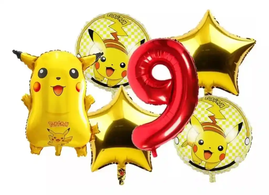 *********************GLOBOS Y PELUCHES MASMELO********************* ---Somos Mercado Lider Platinum--- Por tu compra te llevas: 1 Globo Pikachu 54x45cm 2 Globo circular temática Pikachu 45x45cm 2 Globo estrella dorada 45x45cm 1 Globo número 82cm rojo *Los globos se entregan desinflados, tu compra no incluye el montaje ni la decoración, el servicio de armado no lo tenemos disponible. sin embargo te damos todas las instrucciones para hacer de modo profesional. Si deseas adicionar otros articulos a tu compra puedes escribirnos, recuerda que Somos Globos y Peluches Masmelo Si necesitas variación en los colores, colocar un número, más globos o realizar otros cambios en el diseño original escribenos para ver si podemos hacerlo. Tenemos todo lo necesario para tus decoraciones, somos lo último en tendencias mundiales decorativas. Tenemos disponible: Vasos, platos, manteles, guirnaldas, cubiertos, globos de todo tipo, números, letreros, vela, Etc. Puedes encontrar los articulos de nuestra tienda en el siguiente link, copia y pega, si no encuentas lo que necesitas escribenos: - En ciudades fuera de Bogotá despachamos para el mismo día si compras antes de las 11AM (no incluye festivos)- En Bogotá despachamos para el mismo día, si haces el pedido antes de las 4PM (no incluye festivos)
