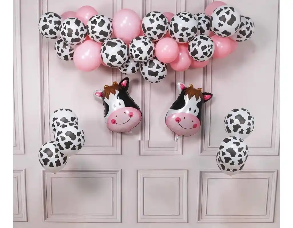 *********************GLOBOS Y PELUCHES MASMELO********************* Por tu compra te llevas. 19 Globo vaca animal print 30cm 15 Globo rosado 30cm 2 Globo vaca metalizado 45x29cm *Los globos se entregan desinflados, tu compra no incluye el montaje ni la decoración, el servicio de armado no lo tenemos disponible. sin embargo te damos todas las instrucciones para hacer de modo profesional. Si deseas adicionar otros articulos a tu compra puedes escribirnos, recuerda que Somos Globos y Peluches Masmelo Si necesitas variación en los colores, colocar un número, más globos o realizar otros cambios en el diseño original escribenos para ver si podemos hacerlo. Tenemos todo lo necesario para tus decoraciones, somos lo último en tendencias mundiales decorativas. Tenemos disponible: Vasos, platos, manteles, guirnaldas, cubiertos, globos de todo tipo, números, letreros, vela, Etc. Puedes encontrar los articulos de nuestra tienda en el siguiente link, copia y pega, si no encuentas lo que necesitas escribenos: https://www.rappi.com.co/tiendas/900280040-globosypeluchesmasmelo-mt-enc/decoracion-para-fiestas/globos-y-bombas