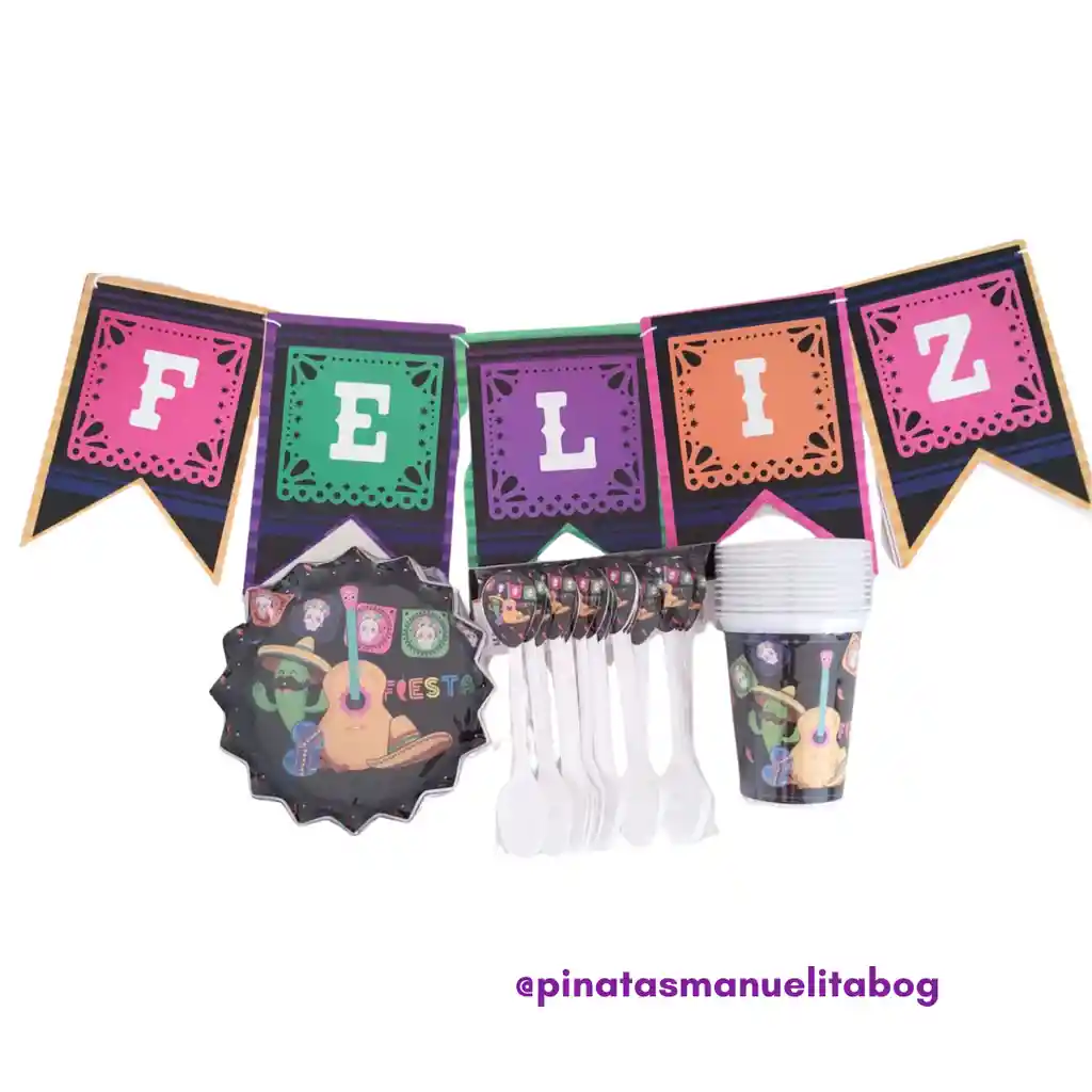 Este kit sencillo de decoración incluye: ·1 Paquete de platos para torta en cartón x 12 und ·1 Paquete de vasos plásticos x 12 und ·1 Paquete de cucharas para torta x 12 und ·1 Letrero Feliz Cumpleaños mexicano Ideal con este kit básico dar un toque especial en cualquier celebración.