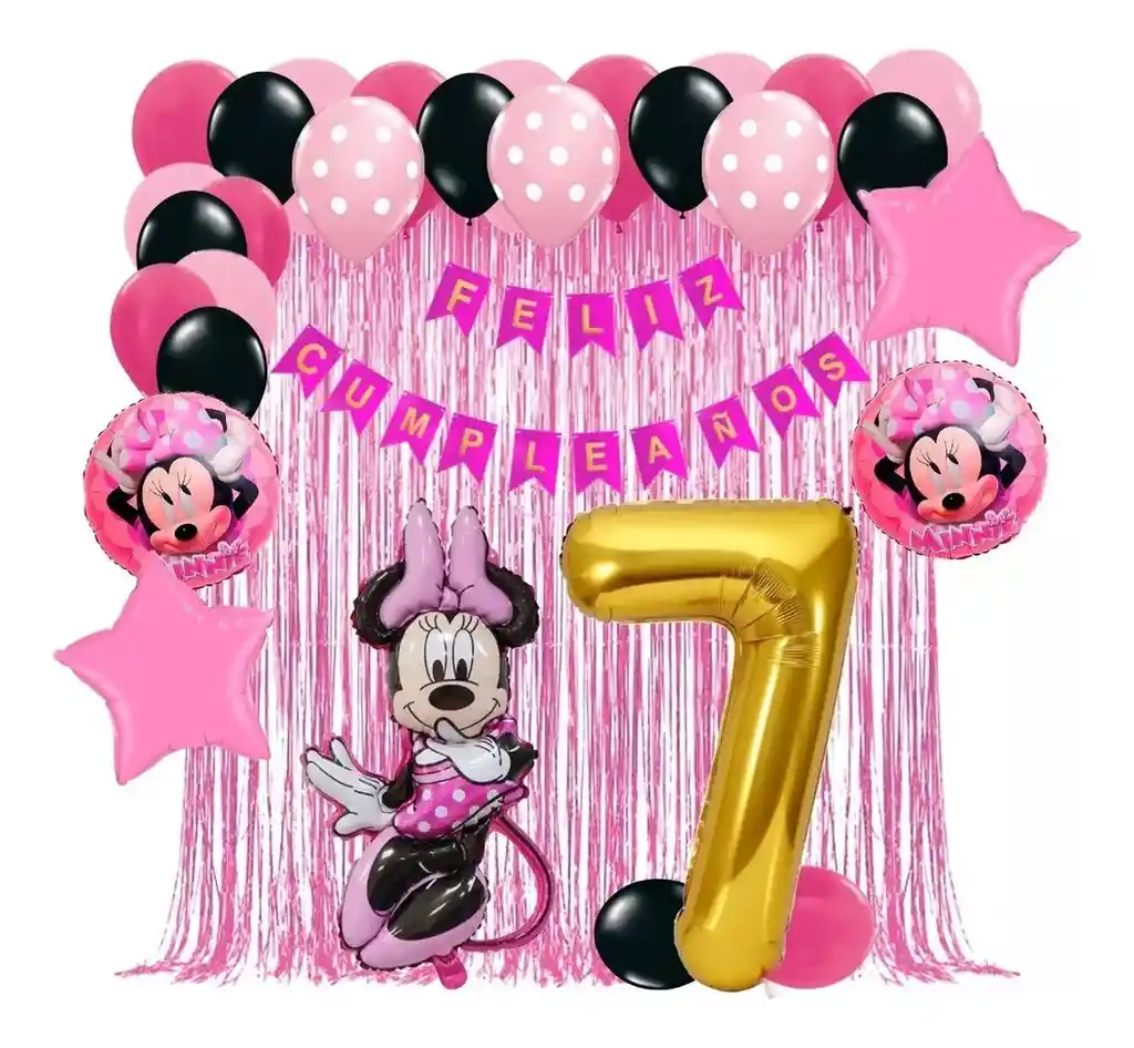 *********************GLOBOS Y PELUCHES MASMELO********************* Por tu compra te llevas. 2 Cortina oro rosa 1×2 metros 1 guirnalda feston feliz cumpleaños 2 metros de largo 36 Globo surtido: Negro, fucsia, rosado polka, rosad 30cm 2 Globo circular temática de minnie 2 Globo estrella rosada 45x45cm 1 Globo Minnie 60x50cm 1 Globo número dorado segun tu elección 82 cm de altura 5 metros de nylon para amarrar globos *Los globos se entregan desinflados, tu compra no incluye el montaje ni la decoración, el servicio de armado no lo tenemos disponible. sin embargo te damos todas las instrucciones para hacer de modo profesional. Si deseas adicionar otros articulos a tu compra puedes escribirnos, recuerda que Somos Globos y Peluches Masmelo Si necesitas variación en los colores, colocar un número, más globos o realizar otros cambios en el diseño original escribenos para ver si podemos hacerlo. Tenemos todo lo necesario para tus decoraciones, somos lo último en tendencias mundiales decorativas. Tenemos disponible: Vasos, platos, manteles, guirnaldas, cubiertos, globos de todo tipo, números, letreros, vela, Etc. Puedes encontrar los articulos de nuestra tienda en el siguiente link, copia y pega, si no encuentas lo que necesitas escribenos: https://www.rappi.com.co/tiendas/900280040-globosypeluchesmasmelo-mt-enc/decoracion-para-fiestas/globos-y-bombas