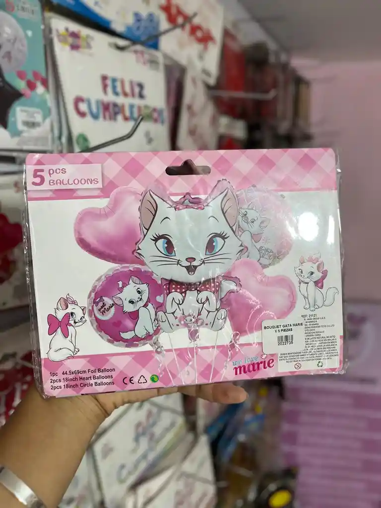 KIT DECORATIVO DE GLOBOS DE LA GATA MARIE X 5 UNID
