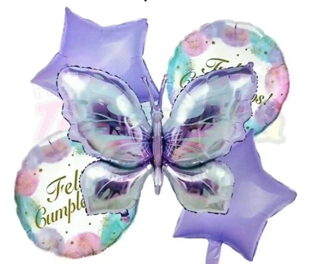 KIT DECORATIVO DE GLOBOS MARIPOSA LILA X 5 PZC