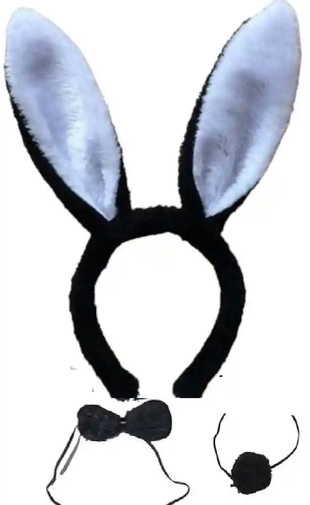 Kit Disfraz De Coneja Negra Y Blanca, Corbatin, Orejas Y Cola - THERIAN