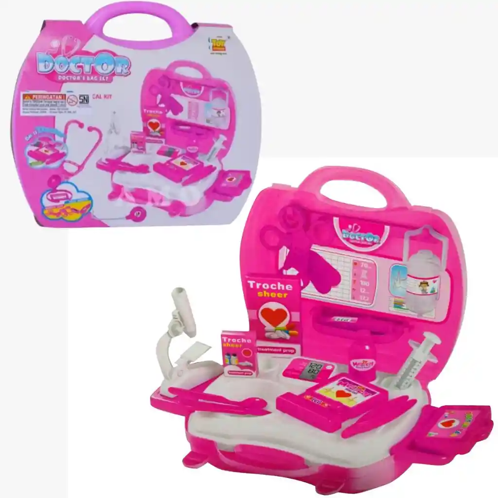 Kit de doctora de juguete en un maletin de plastico de alta calidad, el kit incluye 20 piezas con las cuales los niños podran tener todo lo necesario para jugar a la doctora y al doctor.