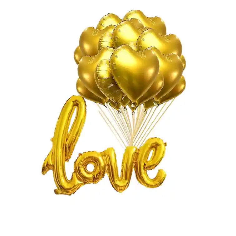 1 Globo de love metalizado dorado 12 globos metalizados dorados de corazon los globos se envia sin inflar si deseas algo mas indicanos con gusto te colaboramos