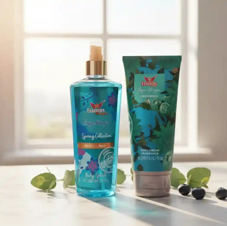 KIT DUO MAGIC KISS ROSAS Y FLORES Incluye caja Contiene: - Crema 200ml - Splash 250ml Aqua Kiss VS es una loción corporal con una fragancia fresca con notas de Fresia y margaritas. Está formulada para que la puedas mezclar y jugar con ella para así custodiarla y hacerla tuya sin reglas.