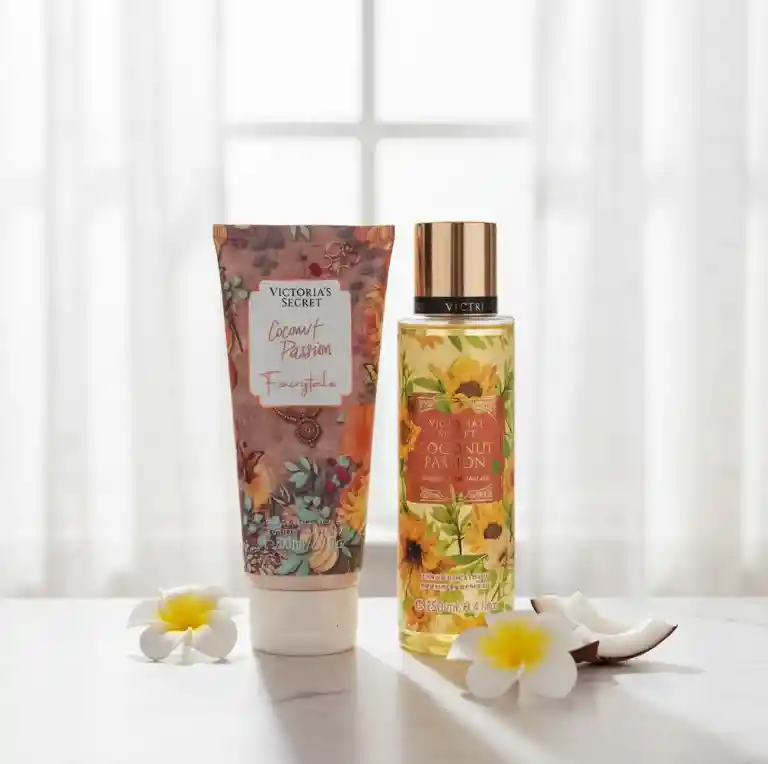 KIT COCONUT PASSION Contiene: - Crema 200ml - Splash 250ml Celebra la colección que te celebra. Para cada momento y cada faceta de ti, descubre aromas únicos que lo abarcan todo. PASIÓN POR EL COCO Coconut Passion de Victoria's Secret es una fragancia de la familia olfativa Floral Frutal Gourmand para Mujeres.