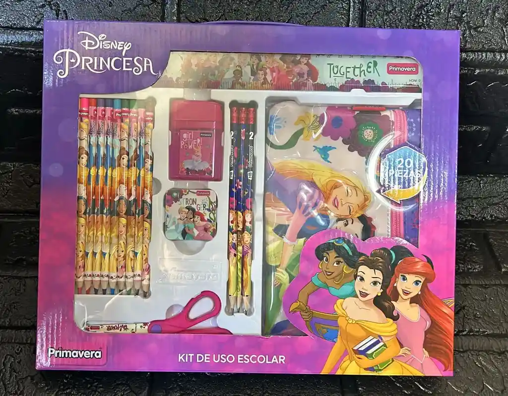 KIT ESCOLAR PRINCESAS COLORES + CARTUCHERA + REGLA + LAPIZ... ETC COD.1487-1