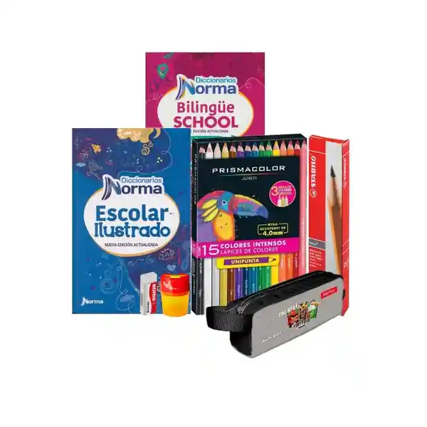 Kit Contiene 7 Unidades. Norma Diccionario Bilingüe + Diccionario Ilustrado + 1 Borrador Ke20 + Lápiz Swano Caja 12 Und + Cartuchera Angy Birds + Colores Prismacolor 15 Und + Tajalápiz Keyroad Robby. Productos de Alta Calidad. Ideal Para el Regreso a Clase en grados Para Primaria.