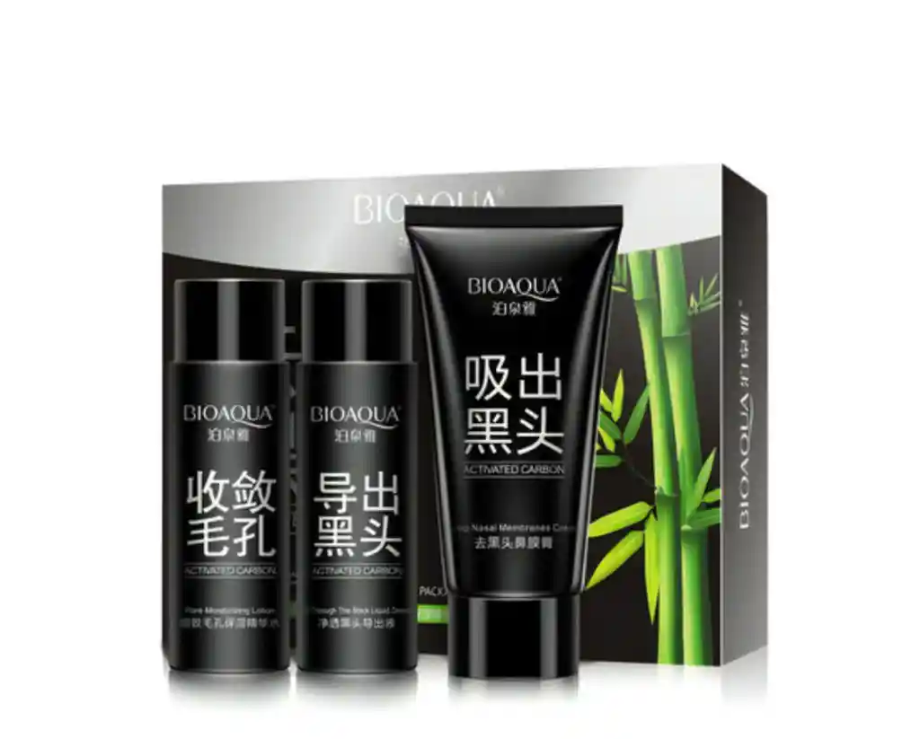para limpieza profunda y eliminación de puntos negros. Formulado con carbón activado, ayuda a absorber impurezas, controlar el exceso de grasa y minimizar la apariencia de los poros. Ideal para una rutina completa de limpieza, dejando la piel más suave, fresca y uniforme. Incluye: Limpiador / loción para preparar la piel Extractor de puntos negros Mascarilla de carbón activado