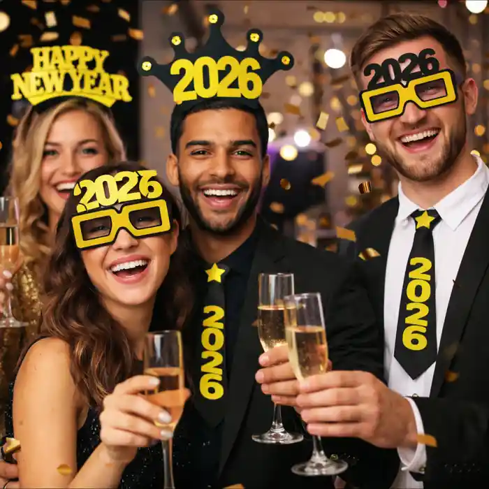 Kit de Fiesta Feliz Año Nuevo 2026 Incluye: 12 piezas (diademas, gafas y corbatas) (Diseños surtidos según disponibilidad) ¡Da la bienvenida al Año Nuevo con nuestro Kit de Fiesta Feliz Año Nuevo 2026! Características: - Ideal para fiestas de fin de año, reuniones, eventos sociales y sesiones de fotos. - Accesorios livianos y cómodos, ideales para usar durante toda la celebración. - Perfecto para fotos grupales, brindis de medianoche y celebraciones familiares. - Fácil de combinar con otros elementos de decoración de Año Nuevo. ¡Haz que tu celebración de Año Nuevo sea única, divertida y llena de estilo!
