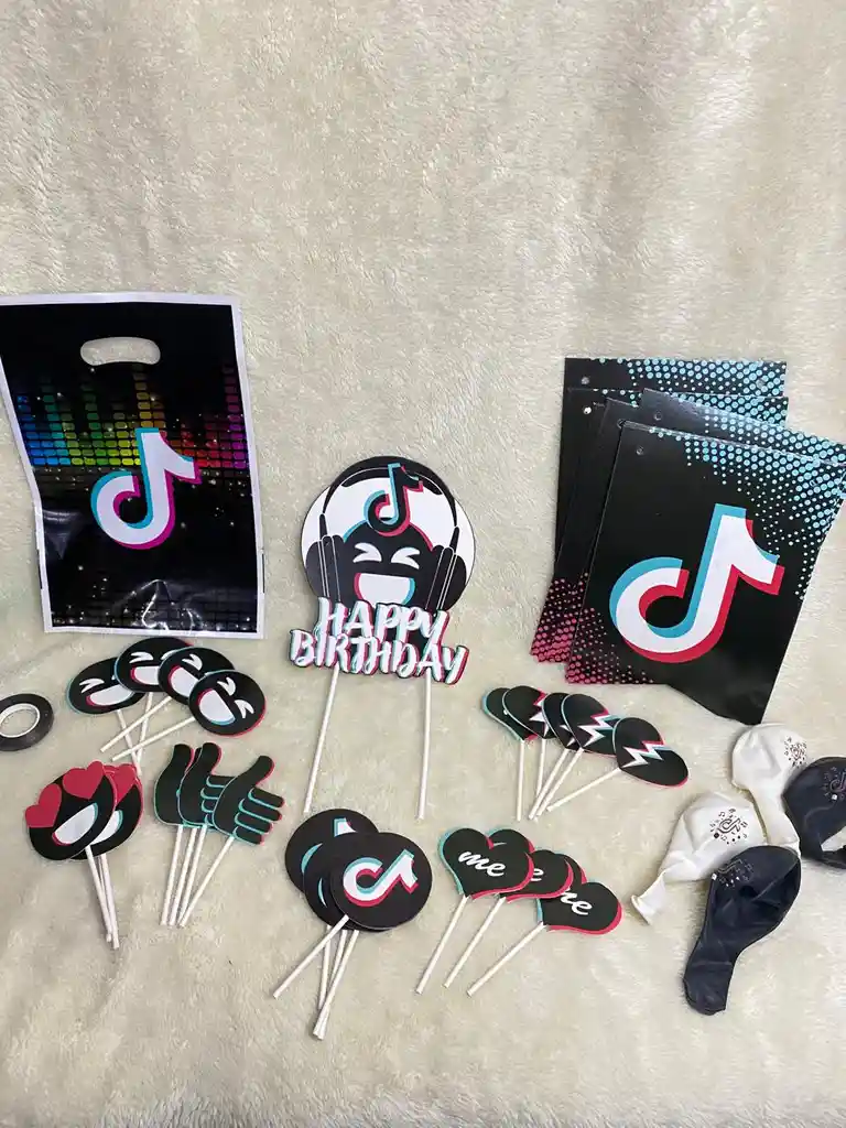 Contiene Vasos Platos Bolsas para sorpresas Letrero Servilletas Pines variados Pitillos Pin torta Globos