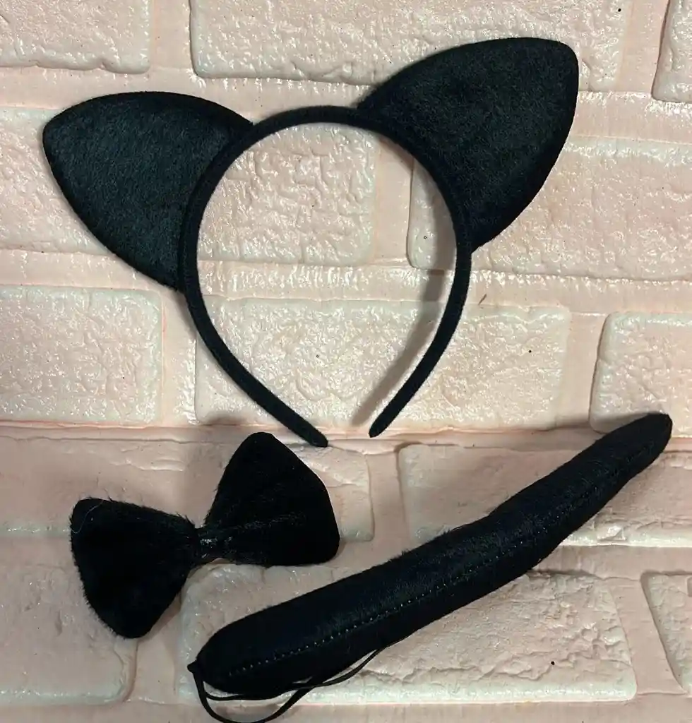 KIT GATA NEGRA DISFRAZ (( DIADEMA / COLA / CORBATIN )) HALLOWEEN COD.2280