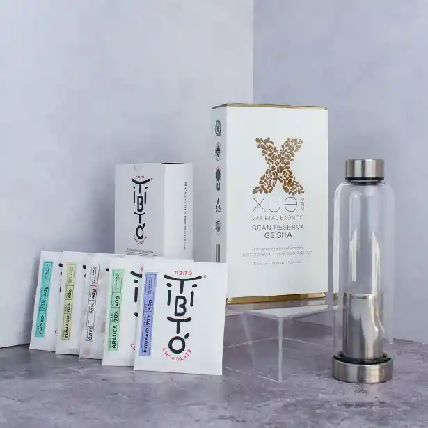 -Café Geisha 227gr -Nuestra botella de cold brew es la solución ideal para disfrutar de un delicioso café frío (20oz/591ml) Marca: Primula - Caja 5 und de barras de chocolate Tibito de 40gr