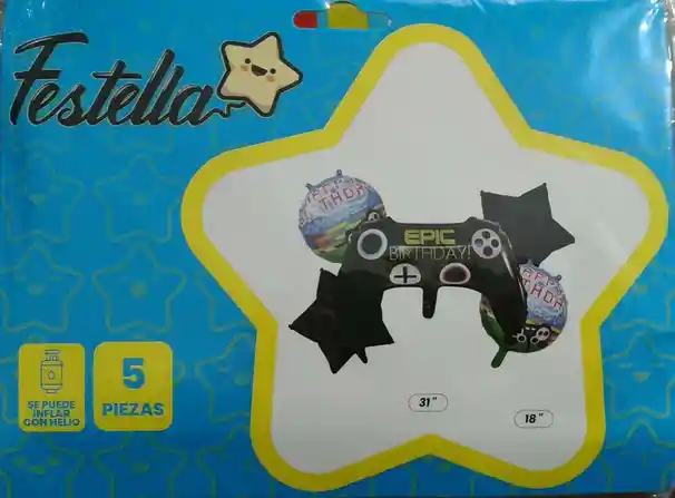 Kit Globo Control De Videojuegos Negro x 5 Piezas Festella