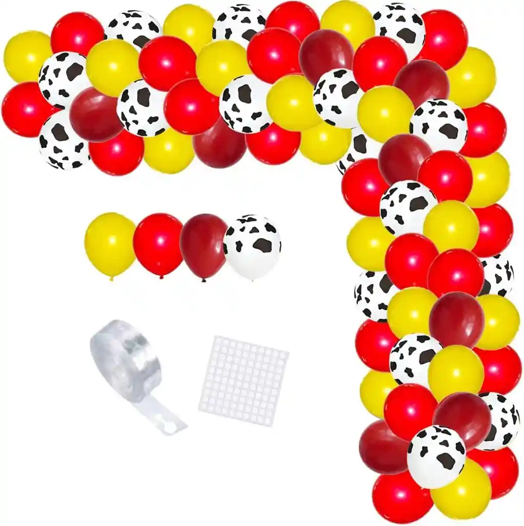 *********************GLOBOS Y PELUCHES MASMELO********************* Por tu compra te llevas. 35 Globo rojo 30 cm 35 Globo amarillo 30 cm 15 Globo vaca manchas 30 cm 15 Globo vino tinto 30 cm 10 Globo rojo 13 cm 10 Globo amarillo 13 cm 1 Cinta para hacer arco 5 metros 1 Cinta adhesiva 100 puntos * No incluye hojas ni follaje *Los globos se entregan desinflados, tu compra no incluye el montaje ni la decoración, el servicio de armado no lo tenemos disponible. sin embargo te damos todas las instrucciones para hacer de modo profesional. Si deseas adicionar otros articulos a tu compra puedes escribirnos, recuerda que Somos Globos y Peluches Masmelo Si necesitas variación en los colores, colocar un número, más globos o realizar otros cambios en el diseño original escribenos para ver si podemos hacerlo. Tenemos todo lo necesario para tus decoraciones, somos lo último en tendencias mundiales decorativas. Tenemos disponible: Vasos, platos, manteles, guirnaldas, cubiertos, globos de todo tipo, números, letreros, vela, Etc. Puedes encontrar los articulos de nuestra tienda en el siguiente link, copia y pega, si no encuentas lo que necesitas escribenos: https://www.rappi.com.co/tiendas/900280040-globosypeluchesmasmelo-mt-enc/decoracion-para-fiestas/globos-y-bombas