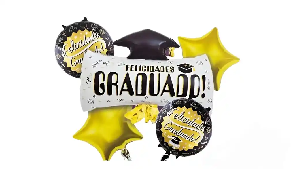 Kit de Globo Metalizado Grado; 2 Estrella Dorada 18 pulgadas, 2 GLobos CIrculo Felicidades Graduado 18 pulgadas, 1 Globo Metalizado Diploma 54x 63 cms