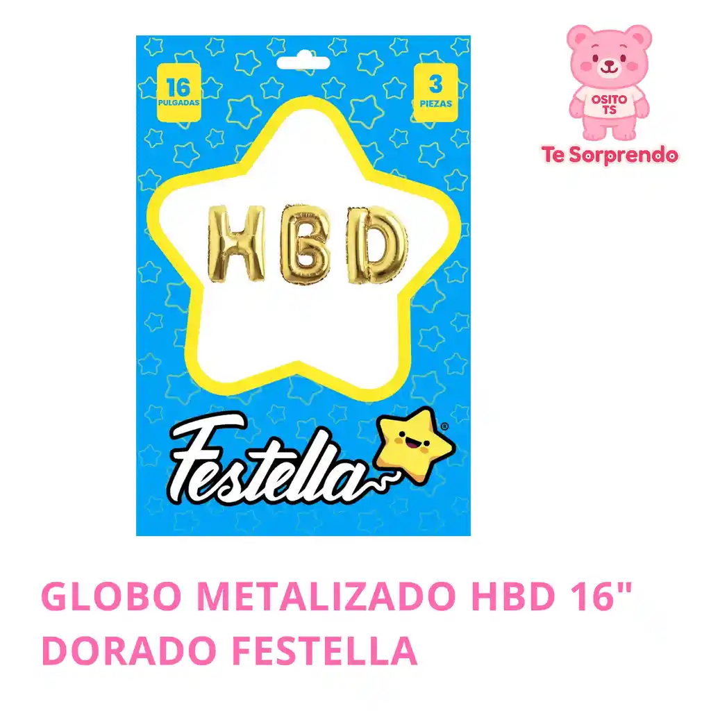 Este Globo no viene inflado. Celebra de manera brillante con nuestro globo foil "HBD" (Happy Birthday) en color dorado de 18". Perfecto para agregar un toque festivo y elegante a tu celebración de cumpleaños. ¡Haz que el día sea especial con este encantador globo!