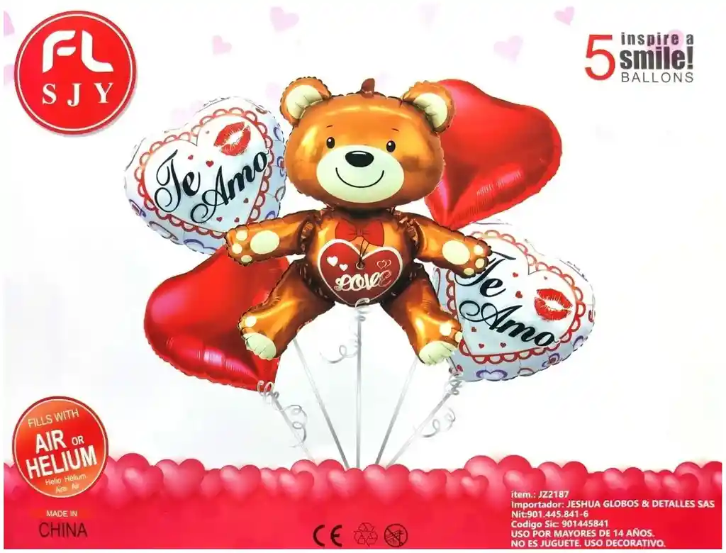 *********************GLOBOS Y PELUCHES MASMELO********************* Por tu compra te llevas: 1 Globo Metalizado Oso 60x64cm 2 Globo corazón metalizado rojo 45x45cm 2 Globo corazón metalizado te amo 45x45cm puede llegar en blanco o rojo dependiendo la disponibilidad 1 Pitillo para inflar globos *Los globos se entregan desinflados, tu compra no incluye el montaje ni la decoración, el servicio de armado no lo tenemos disponible. sin embargo te damos todas las instrucciones para hacer de modo profesional. Si deseas adicionar otros articulos a tu compra puedes escribirnos, recuerda que Somos Globos y Peluches Masmelo ;) - En ciudades fuera de Bogotá despachamos para el mismo día si compras antes de las 11AM (no incluye festivos) - En Bogotá despachamos para el mismo día, si haces el pedido antes de las 4PM (no incluye festivos)