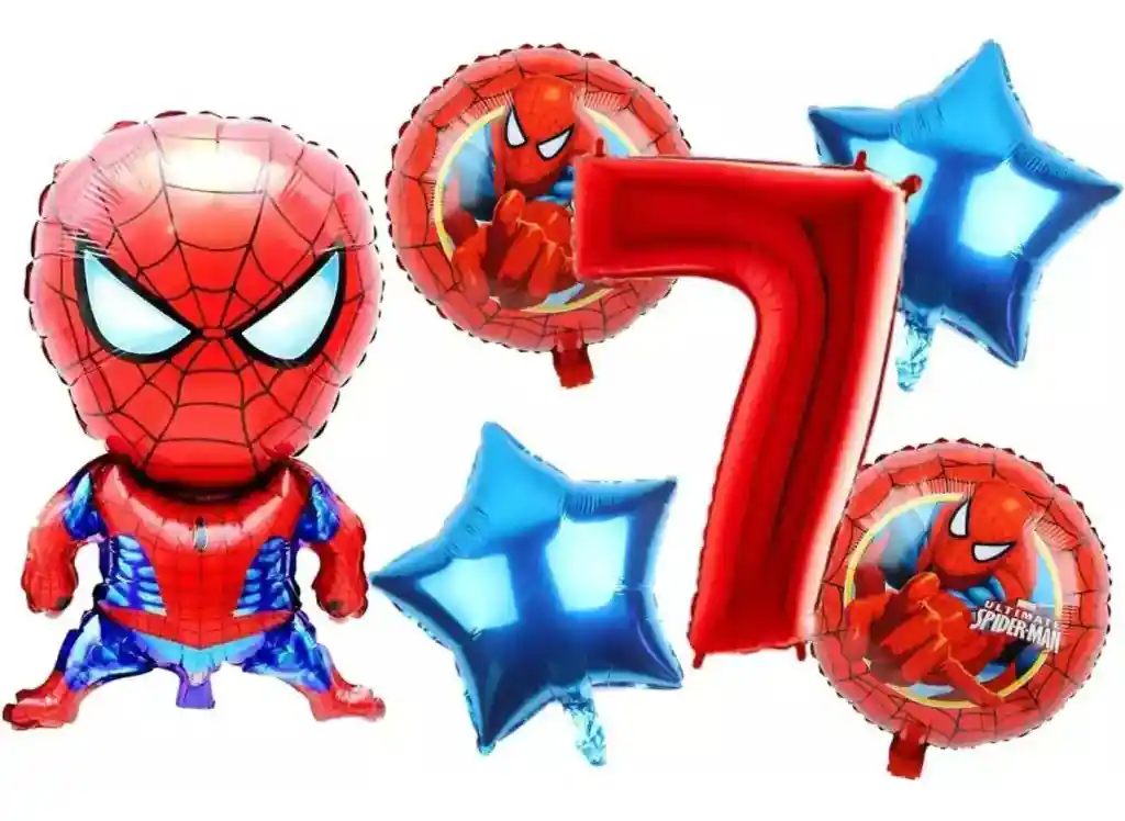 *********************GLOBOS Y PELUCHES MASMELO********************* Somos Mercado Lider Platinum Por tu compra te llevas: 1 Globo Spiderman 65x45cm 2 Globo circular temática de Spiderman 45x45cm 2 Globo azul estrella 45x45cm 1 Globo número rojo 82 cm segun tu elección