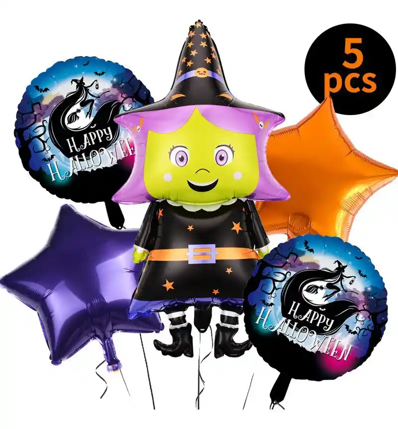 *********************GLOBOS Y PELUCHES MASMELO********************* ————————–Somos Mercado Líder Platinum———————— Por tu compra Llevas: 1 Globo bruja 65x45cm 2 Globo Halloween 45x45cm (motivo puede variar según disponibilidad) 2 Globo estrella 45x45cm *Los globos se entregan desinflados, tu compra no incluye el montaje ni la decoración, el servicio de armado no lo tenemos disponible. sin embargo te damos todas las instrucciones para hacer de modo profesional. Si deseas adicionar otros artículos a tu compra puedes escribirnos, recuerda que Somos Globos y Peluches Masmelo Si necesitas variación en los colores, colocar un número, más globos o realizar otros cambios en el diseño original escríbenos para ver si podemos hacerlo. Tenemos todo lo necesario para tus decoraciones, somos lo último en tendencias mundiales decorativas. Tenemos disponible: Vasos, platos, manteles, guirnaldas, cubiertos, globos de todo tipo, números, letreros, vela, Etc. Puedes encontrar los artículos de nuestra tienda en el siguiente link, copia y pega, si no encuentras lo que necesitas escríbenos: https://www.rappi.com.co/tiendas/900280040-globosypeluchesmasmelo-mt-enc/decoracion-para-fiestas/globos-y-bombas