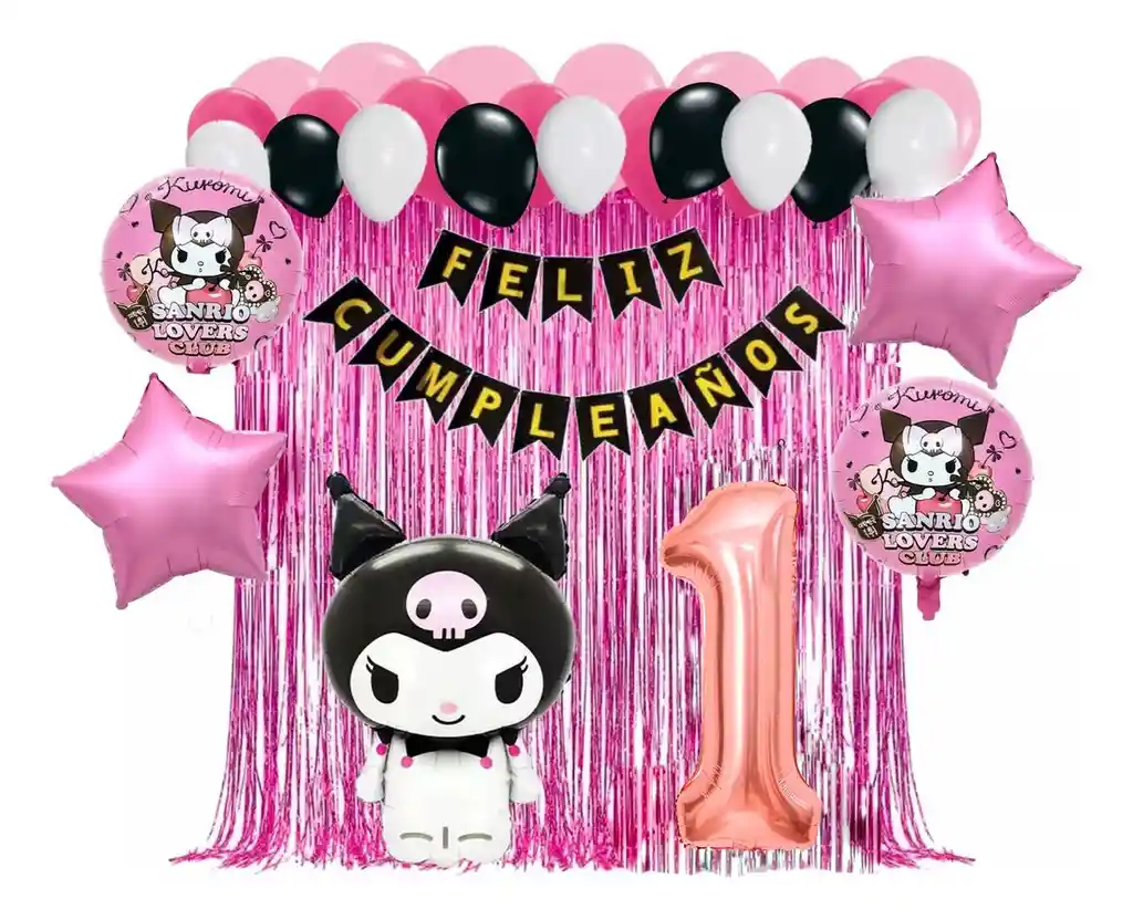 Kit Globos Cumpleaños Decoracion Kuromi Oro Hello Hitty #1