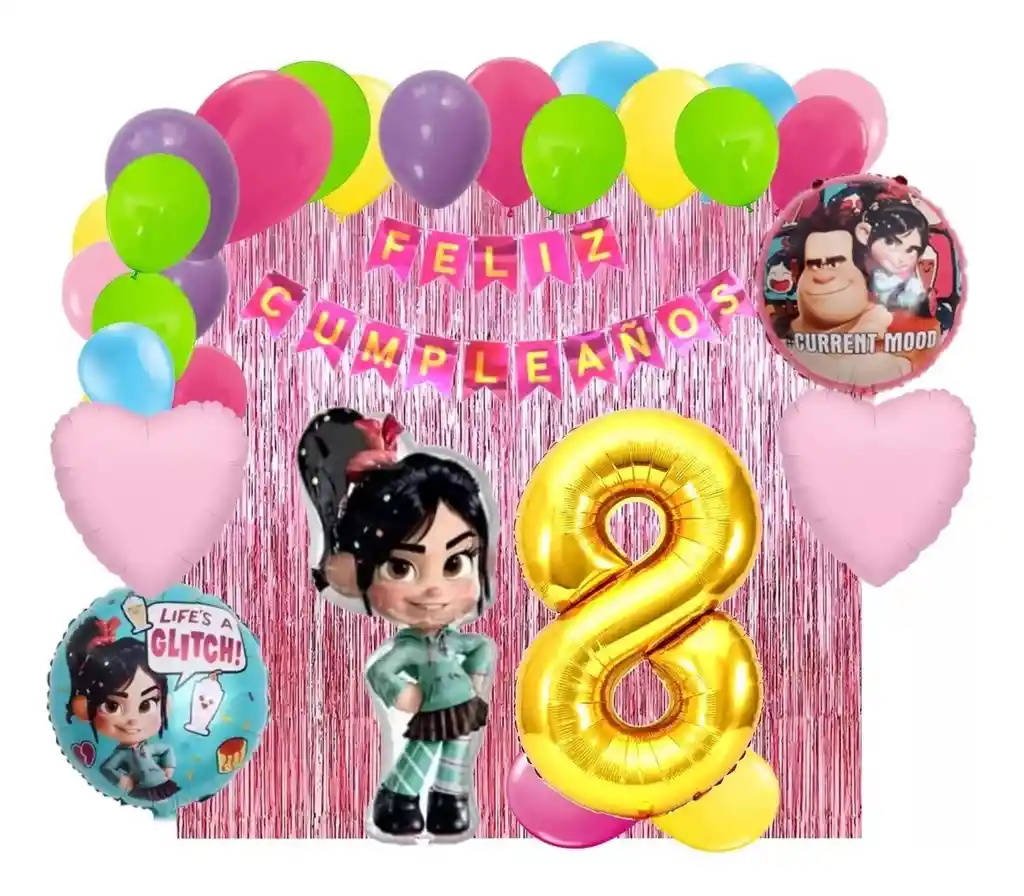 Kit Globos Cumpleaños Decoracion Vanellope Ralph Cortina #8