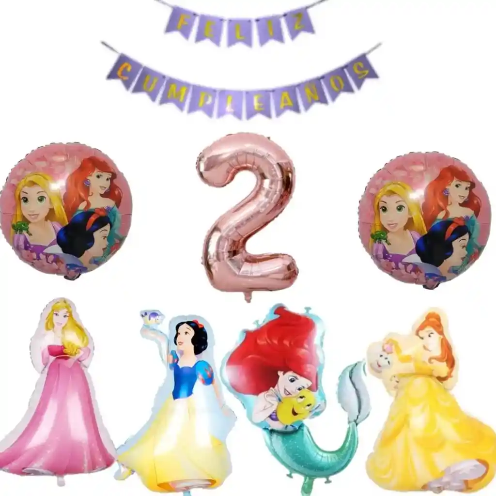 Kit Globos Decoracion Princesas Rapunzel Cenicienta Sirenita #2