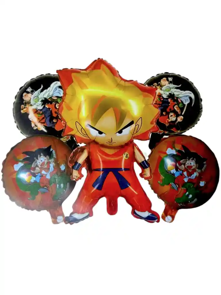 Kit decoración fiesta cumpleaños Dragon ball Z 5 globos metalizado 1 globo de goku de 69 cm aproximados 4 globos redondos metalizados de vegueta azul disponibilidad inmediata