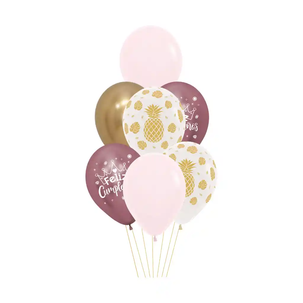 COTIZACIÓN: 1808 No incluyen helio Globos sencillos x 3 und (Rosado pastel) Globos réflex x 3 und (dorado) Globos estampados x 6 und *Globos hechos de látex 100% natural un material orgánico que es totalmente biodegradable.*