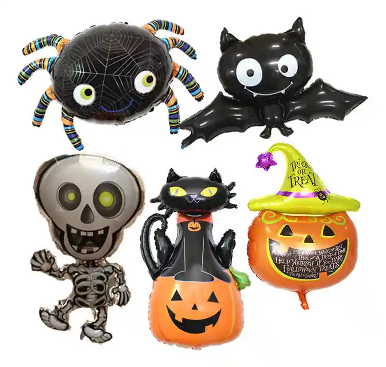 *********************GLOBOS Y PELUCHES MASMELO********************* ————————–Somos Mercado Líder Platinum———————— Te damos toda la asesoría para que tú puedas armar tu propio arco Por tu compra te llevas: 1 Globo araña 70x45cm 1 Globo murciélago 70x45cm 1 Globo esqueleto 65x45cm 1 Globo gato 70x40 cm 1 Globo calabaza 70x40cm Accesorios: -Punto de pegamento: 1 rollo -Cinta de cadena: 1 rollo *Los globos se entregan desinflados, tu compra no incluye el montaje ni la decoración, el servicio de armado no lo tenemos disponible. sin embargo te damos todas las instrucciones para hacer de modo profesional. Si deseas adicionar otros artículos a tu compra puedes escribirnos, recuerda que Somos Globos y Peluches Masmelo Si necesitas variación en los colores, colocar un número, más globos o realizar otros cambios en el diseño original escríbenos para ver si podemos hacerlo. Tenemos todo lo necesario para tus decoraciones, somos lo último en tendencias mundiales decorativas. Tenemos disponible: Vasos, platos, manteles, guirnaldas, cubiertos, globos de todo tipo, números, letreros, vela, Etc. Puedes encontrar los artículos de nuestra tienda en el siguiente link, copia y pega, si no encuentras lo que necesitas escríbenos: https://www.rappi.com.co/tiendas/900280040-globosypeluchesmasmelo-mt-enc/decoracion-para-fiestas/globos-y-bombas
