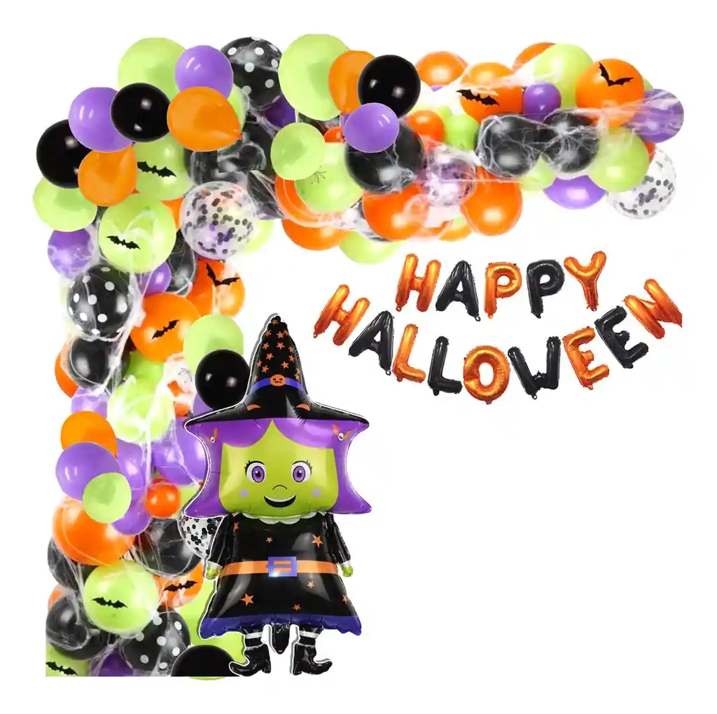 *********************GLOBOS Y PELUCHES MASMELO********************* ————————–Somos Mercado Líder Platinum———————— Te damos toda la asesoría para que tú puedas armar tu propio arco Por tu compra te llevas: 1 Globo letras Happy Halloween 40 cm altura 5 Globo polka negro 30 cm 12 murciélagos negros cartulina 5 Globo transparente con confeti 30 cm 25 Globo verde lima 30 cm 15 Globo verde lima 13 cm 20 Globo negro 30 cm 10 Globo negro 13 cm 20 Globo morado 30 cm 15 Globo morado 13 cm 20 Globo naranja 30 cm 10 Globo naranja 13 cm Accesorios: -Punto de pegamento: 1 rollo -Cinta de cadena: 1 rollo *Los globos se entregan desinflados, tu compra no incluye el montaje ni la decoración, el servicio de armado no lo tenemos disponible. sin embargo te damos todas las instrucciones para hacer de modo profesional. Si deseas adicionar otros artículos a tu compra puedes escribirnos, recuerda que Somos Globos y Peluches Masmelo Si necesitas variación en los colores, colocar un número, más globos o realizar otros cambios en el diseño original escríbenos para ver si podemos hacerlo. Tenemos todo lo necesario para tus decoraciones, somos lo último en tendencias mundiales decorativas. Tenemos disponible: Vasos, platos, manteles, guirnaldas, cubiertos, globos de todo tipo, números, letreros, vela, Etc. Puedes encontrar los artículos de nuestra tienda en el siguiente link, copia y pega, si no encuentras lo que necesitas escríbenos: https://www.rappi.com.co/tiendas/900280040-globosypeluchesmasmelo-mt-enc/decoracion-para-fiestas/globos-y-bombas