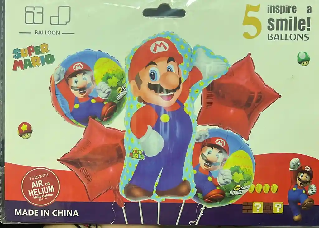KIT DE GLOBOS TEMA MARIO BROS SIN INFLAR INFORMAR SI DESEA SERVICIO DE INFLADO EN HELIO(ADICIONAL)