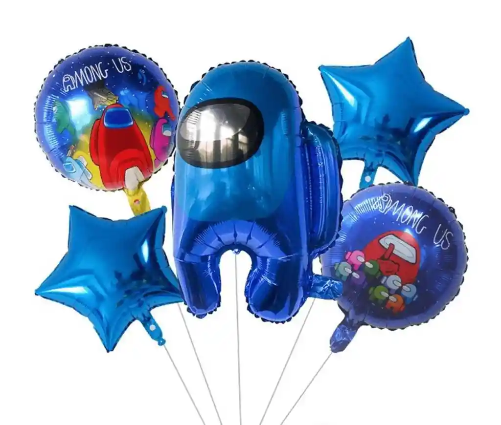 Kit de globos metalizados x 5 unidades con el diseño y colores cómo esta en la foto. (Incluye pitillo para inflar cada uno de los globos)