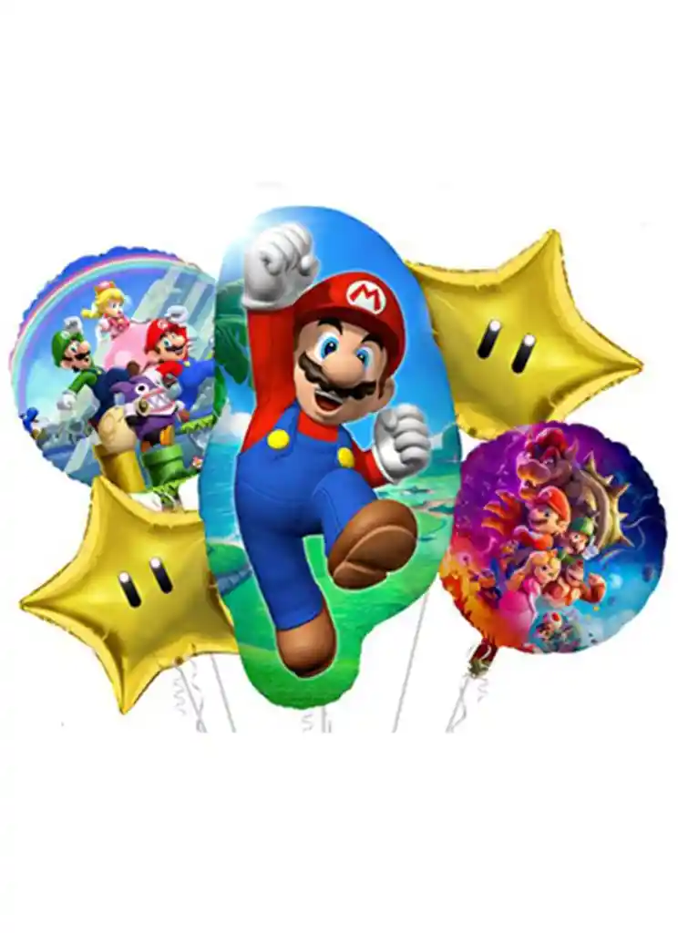 Kit Globos Metalizados Por 5 Mario Bross