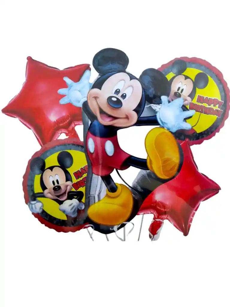 Globos metalizados de mickey mouse 2 globos de estrellas rojo de 45 cm 2 globos redondos de 45 cm misma tematica 1 globo de mickey mouse de aproximadamente 65 cm los globos se envian sin inflar metalizados se mantienen inflados por bastante tiempo son resistentes aptos para helio si deseas algo adicional indicanos y con gusto te colaboramos