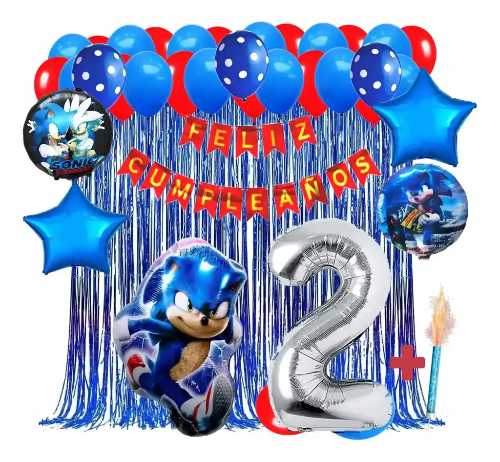 *********************GLOBOS Y PELUCHES MASMELO********************* Somos Mercado Lider Platinum Por tu compra te llevas: 3 Globo polka azul rey 30cm 18 Globo azul rey 30cm 18 Globo rojo 30cm 2 Globo circular temática de Sonic 30cm 2 Globo estrella azul rey 30cm 1 Feston rojo cumpleaños 2 metros de largo 1 Vela Volcan 1 Globo Sonic 65x45cm 1 Cinta de Arco 5 metros 1 Instructivo de armado de kit