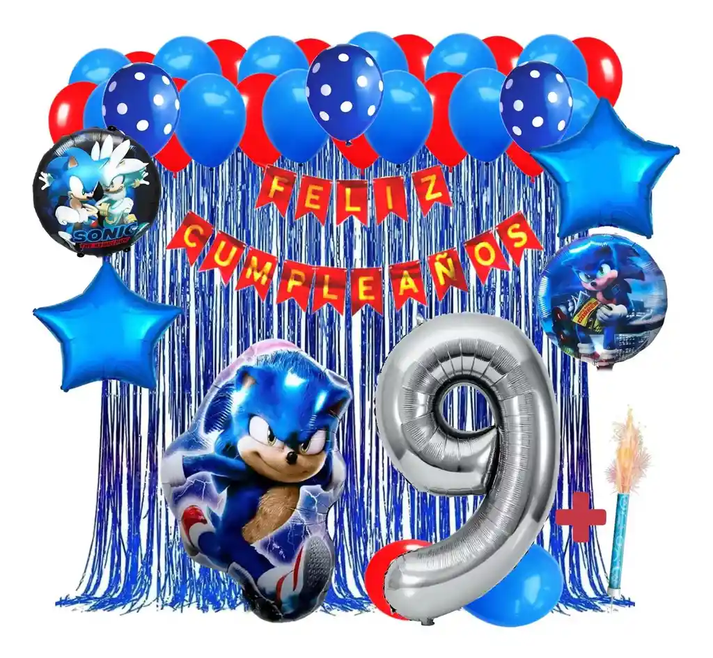 *********************GLOBOS Y PELUCHES MASMELO********************* Somos Mercado Lider Platinum Por tu compra te llevas: 3 Globo polka azul rey 30cm 18 Globo azul rey 30cm 18 Globo rojo 30cm 2 Globo circular temática de Sonic 30cm 2 Globo estrella azul rey 30cm 1 Feston rojo cumpleaños 2 metros de largo 1 Vela Volcan 1 Globo Sonic 65x45cm 1 Cinta de Arco 5 metros 1 Instructivo de armado de kit