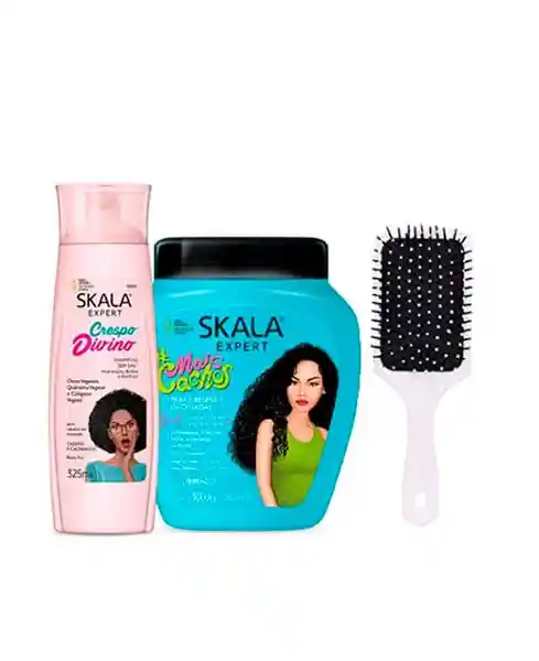 Kit Incluye: Tratamiento Mais Cachos Skala 1000 g + Cepillo 1 Und + Shampoo Crespo 325 mL Divino Skala Kit Perfecto Para Manejar de la Mejor Manera Los Cabellos Ondulados o Rizados. Tratamiento Mais Cachos: 1000 g Shampoo Crespo Divino: 325 mL