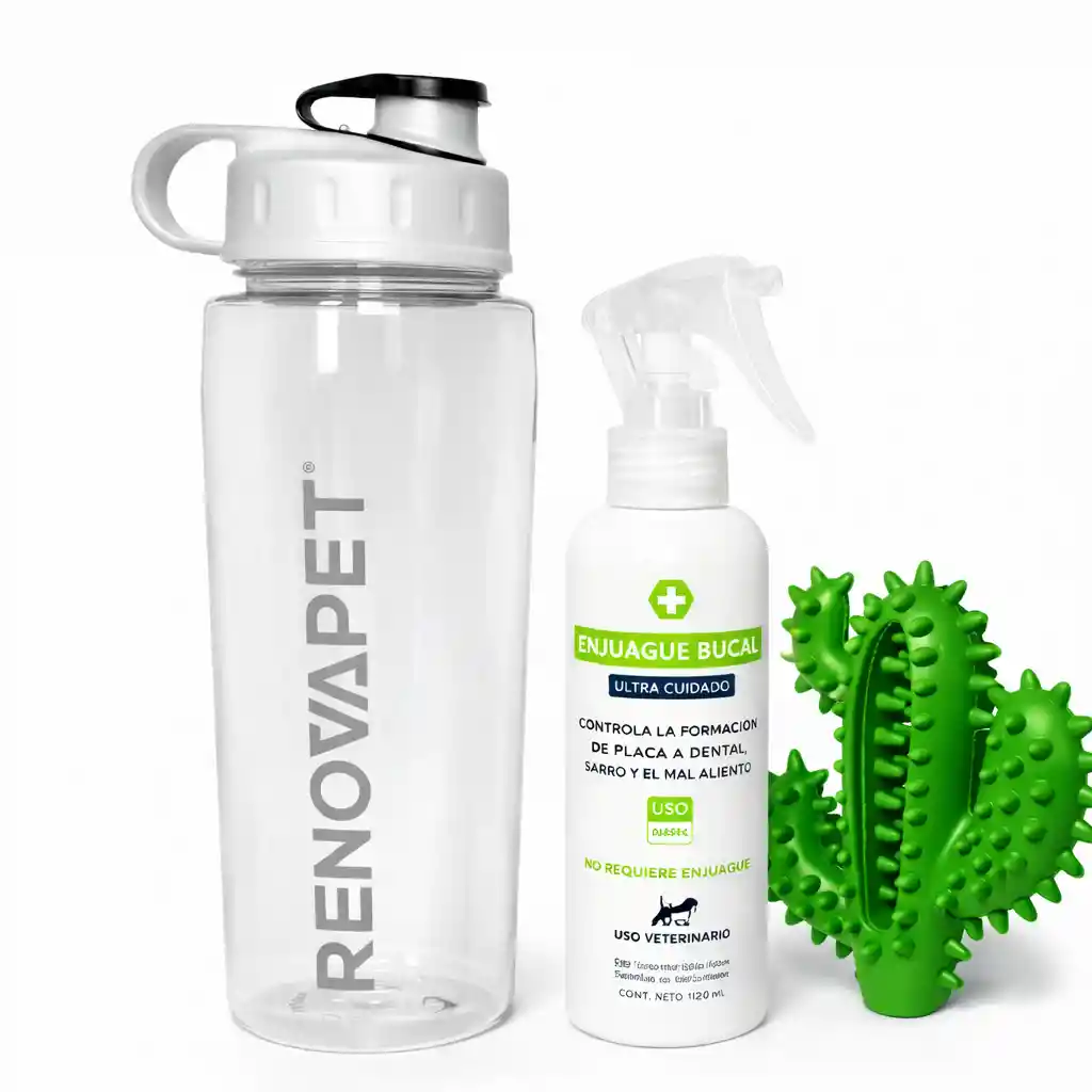 Enjuague Bucal RENOVAPET 120ML - Lleva un termo gratis. REG ICA: 11426-CV -Elimina el mal aliento. -No requiere enjuague ni cepillado. -Aplicar de 4-5 splash sobre los dientes de tu mascota todos los días. Colágeno MULTI-ADVANCE 300GR REG ICA: 23290SL -Fortalecimiento articular. -Optimiza la movilidad -Favorece la salud intestinal -Con vitaminas y aminoácidos.