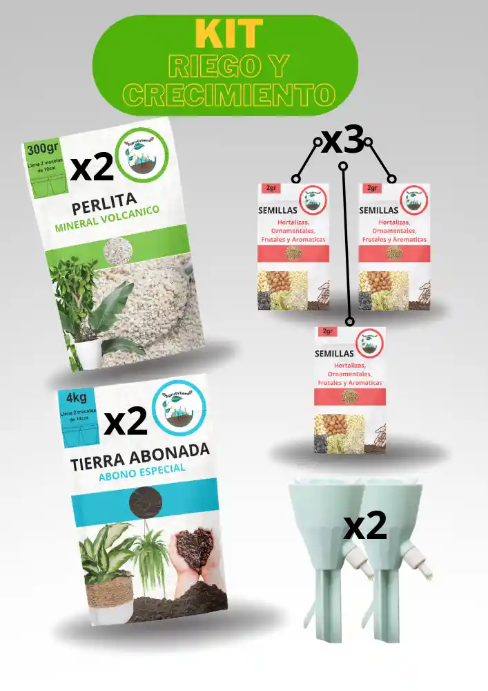 Saludos Estimados Clientes 💧 Ideal si tienes poco tiempo para cuidar tus plantas. Incluye sistema de riego, tierra abonada, semillas y perlita. Perfecto para huertas urbanas y principiantes. 💧 Sistema de riego → 1 unidad 🌱 Tierra abonada 4 kg → 2 unidades (8 kg) 🌾 Semillas → 3 sobres (Nos escribes cuales semillas deseas de las opciones que les vamos a enviar por mensaje) ⚪ Perlita → 2 bolsas de 300 g (600 g) COMPRE CON SEGURIDAD Y CONFIANZA* Somos AgricUrbana. amplia experiencia en ventas on-line.*Aceptamos todas las formas de pago**Despachos a todo el pais**