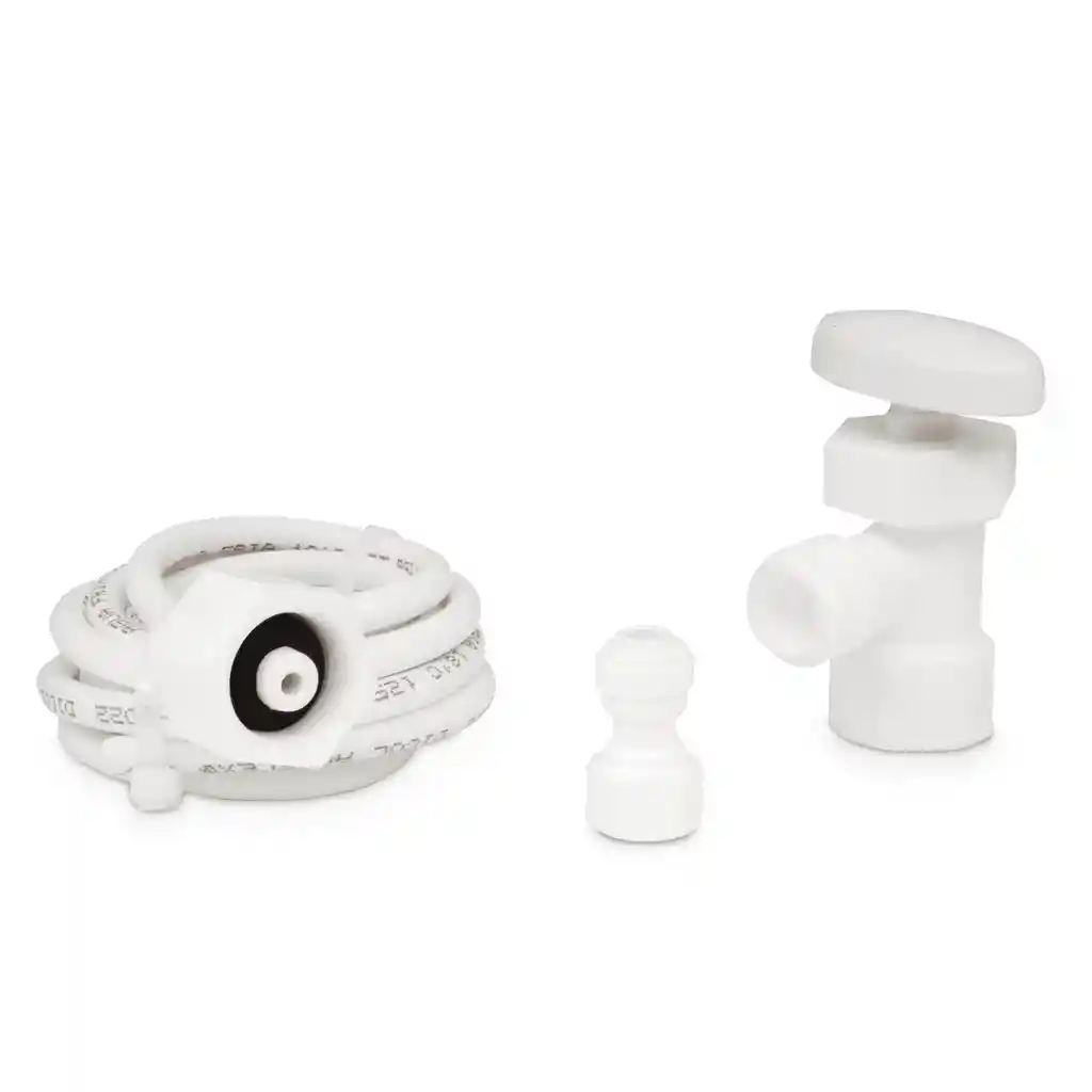 KIT Manguera con válvula de regulación sencilla y adaptador. • Transición manguera para transporte de agua fría de conexión a neveras o nevecon. • Producto de primera calidad • Material en polipropileno y polietileno. • Temperatura mínima 0 ° C. Max 82 ° C agua caliente • Presión 150 P.S.I. NTC 5441 / 1644
