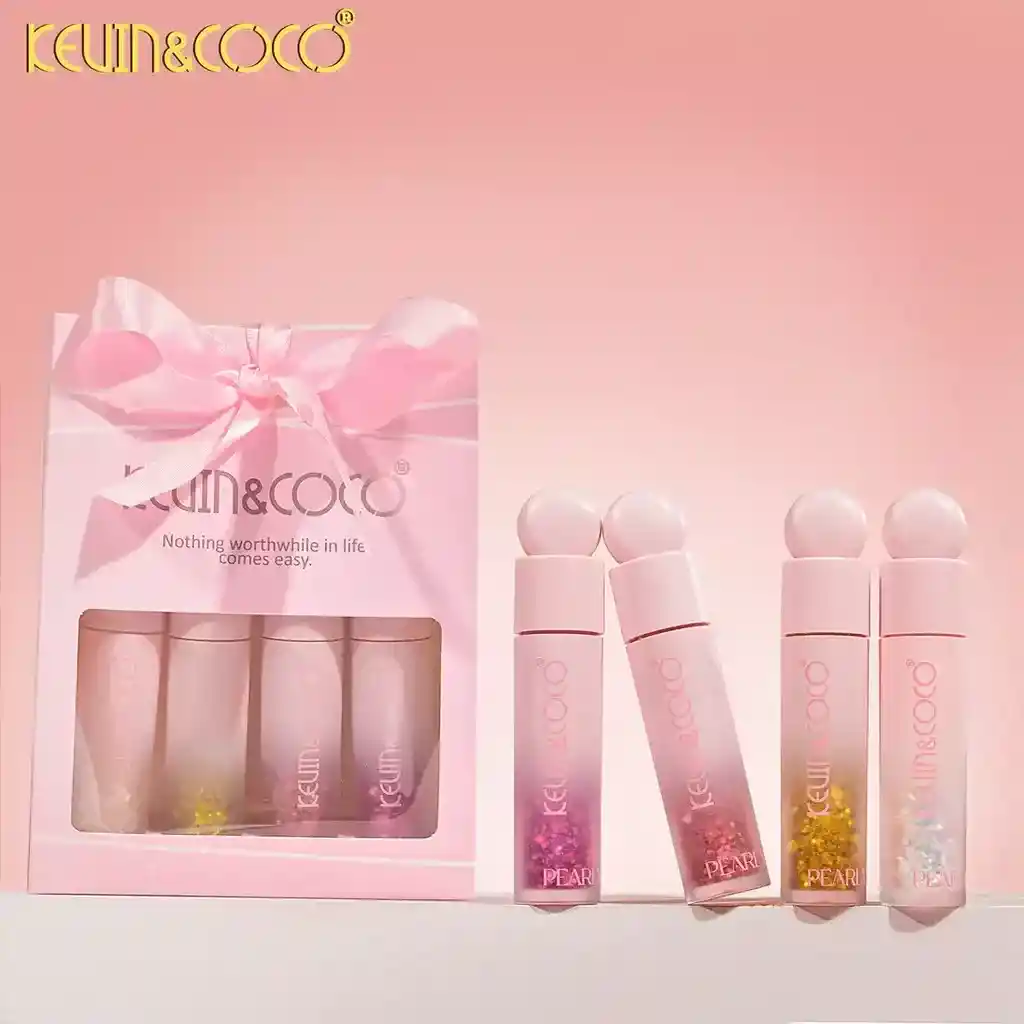 El Kit Labial Líquido Glitter*4 de KEVIN&COCO (Ref: KC246205) es un set de cuatro brillos labiales con glitter diseñados para un acabado jugoso, brillante y con destellos multidimensionales. Características del Producto Acabado: Proporciona un brillo multidimensional con destellos finos que iluminan los labios sin verse exagerados. Textura: Es ligero y cómodo, con una fórmula no pegajosa. Hidratación: Contiene ingredientes hidratantes que dejan los labios suaves, sedosos y protegidos de la sequedad. Versatilidad: Los tonos son combinables; se pueden usar solos para un brillo natural o como topper sobre tu labial favorito para añadir un toque de glamour. Presentación: Viene en un paquete de 4 unidades, ideal para diversas ocasiones o como regalo. Reseñas de Usuarios Los usuarios y expertos en belleza alaban la marca KEVIN&COCO por ofrecer maquillaje de buena calidad a precios asequibles. Los labiales en particular son descritos como altamente pigmentados y con una textura agradable. Se menciona que la fórmula es duradera, aunque con los brillos labiales con glitter, se recomienda comer con un poco de cuidado para mantener el producto intacto por más tiempo. El empaque es descrito como "súper cute" y atractivo, lo que lo hace popular entre los compradores.