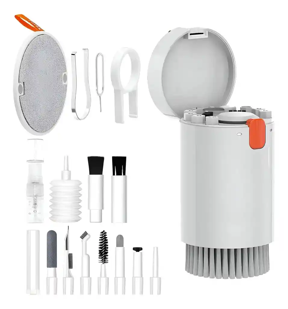 Kit Limpieza 20 En 1 ¡Devuelve el brillo y la limpieza profesional a tus dispositivos con este completo kit 20 en 1! DESCRIPCION DAZ Este completo kit de limpieza 20 en 1 es la solución ideal para mantener tus dispositivos electrónicos como nuevos. Diseñado especialmente para computadoras, teclados, laptops, teléfonos, audífonos y más, incluye herramientas específicas para eliminar polvo, suciedad, grasa y restos acumulados en los rincones más difíciles de alcanzar. Con este set podrás realizar una limpieza profunda sin dañar componentes sensibles. Incluye cepillos suaves, brochas antiestáticas, paños de microfibra, sopladores de aire, bastoncillos y herramientas para ranuras, todo en una práctica caja organizadora que puedes llevar a cualquier parte. Ya sea en casa, oficina o en movimiento, este kit te ayuda a prolongar la vida útil de tus dispositivos y mantenerlos siempre impecables. CARACTERISTICAS - Incluye Herramientas de Limpieza Profesional. - Compatible con Computadoras Teléfonos Cámaras. - Cepillos Suaves para Componentes Delicados. - Brochas Antiestáticas Evitan Daño por Electricidad. - Paños de Microfibra para Pantallas y Lentes. - Herramientas de Precisión para Teclados y Ranuras. - Soplador de Aire para Remover Polvo Fino. - Bastoncillos para Conectores y Audífonos. - Caja Organizadora Compacta y Portátil. - Ideal para Uso Doméstico o Técnico Profesional. QUE INCLUYE LA COMPRA X1 Kit Limpieza