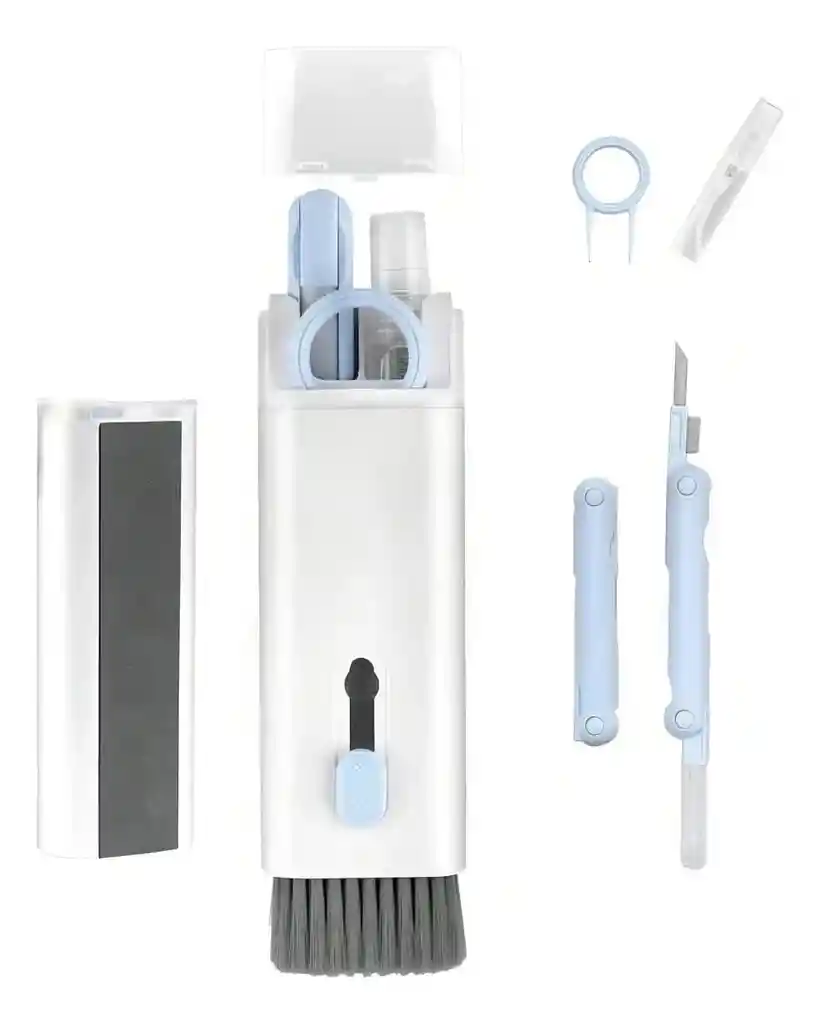 · Kit de limpieza electrónica 7 en 1 · Incluye: · Bolígrafo de limpieza 3 en 1 para airpods: · Punta de silicona · Cepillo de auriculares · Hisopo de esponja flocada · Limpiador de cepillo retráctil suave para teclado · Saca-Teclas · Botella spray 10ml · Franela de limpieza de pantalla · Tamaño: 11 x 4,7 x 3 cm. · Peso aproximado. 90 g. · Material: ABS + felpa + tela no tejida