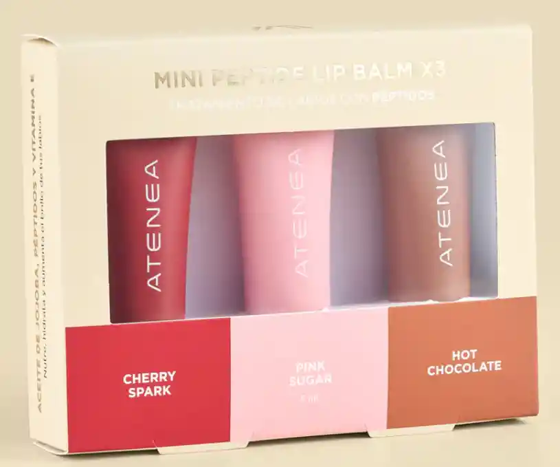 ESTE KIT QUE REÚNE TRES DE LOS TONOS MÁS VENDIDOS DE NUESTROS PEPTIDE LIP BALM EN FORMATO VIAJERO. SU FÓRMULA CON PÉPTIDOS Y ACTIVOS NUTRITIVOS CUIDA LOS LABIOS CON CADA APLICACIÓN, APORTANDO UN BRILLO CONFORTABLE Y UNA SENSACIÓN JUGOSA QUE SE SIENTE Y SE NOTA. PERFECTO PARA LLEVAR CONTIGO A TODAS PARTES O PARA REGALAR EN CUALQUIER OCASIÓN. LA OPCIÓN DE REGALO IDEAL: UN DETALLE FUNCIONAL, LINDO Y LLENO DE BENEFICIOS QUE SIEMPRE ENCANTA.