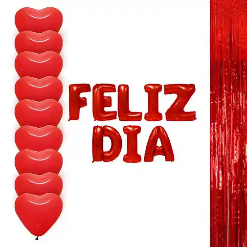 Kit de decoración de amor y amistad Incluye: (1) Letrero inflable "Feliz Día" en color rojo (2) Cortinas metalizadas color rojo. Cada una de Ancho: 1m * Largo: 2m (12) Bombas corazón,